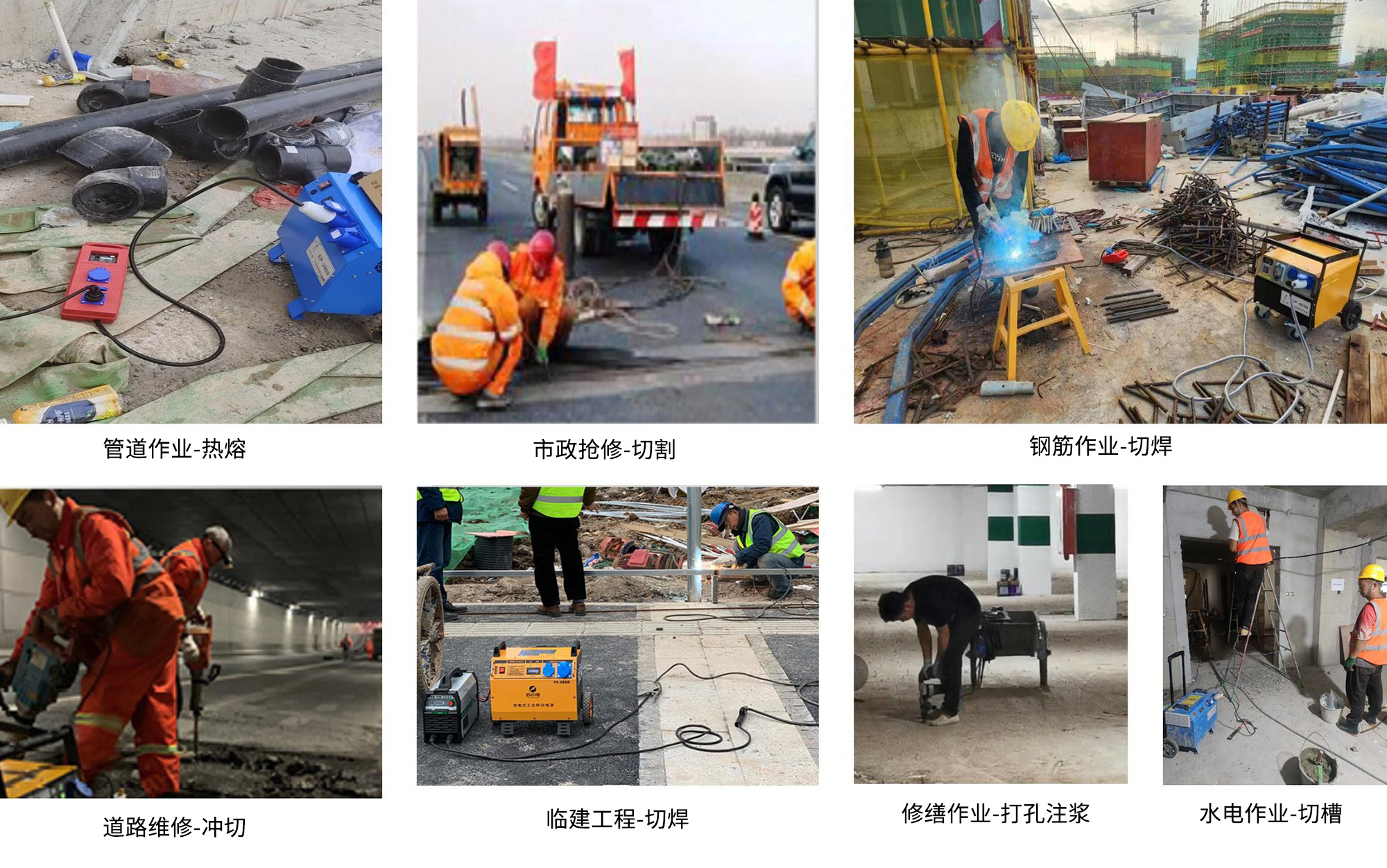 EP-6000工程電源,可滿足5把電錘,2臺(tái)注漿機(jī)同時(shí)作業(yè),持續(xù)作業(yè)超過8小時(shí)。