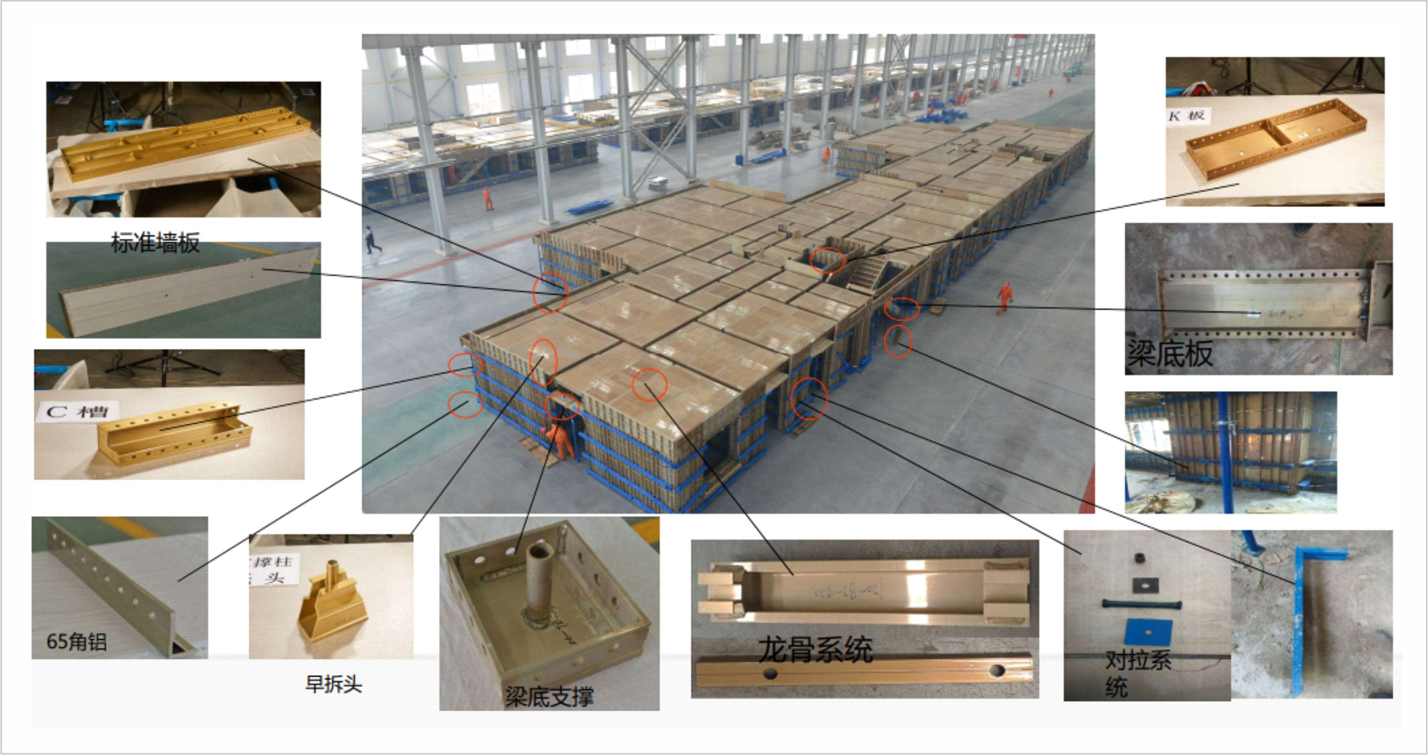 模板系統(tǒng): 構(gòu)成混凝土結(jié)構(gòu)施工所需的封閉面,保證混凝土澆灌時建筑結(jié)構(gòu)成型。