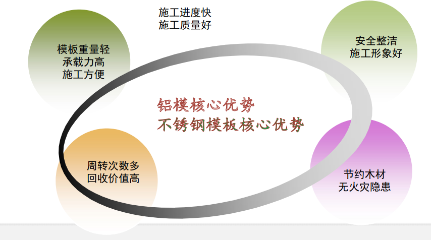 1.整體澆筑、一次成型, 縮短工期(標(biāo)準(zhǔn)工期4-5天);保證建筑物的整體強(qiáng)度,周轉(zhuǎn)使用壽命可達(dá)300次以上。